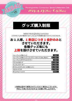※コラボ限定グッズの品切れ・再入荷情報はTwitter(@AKB48_WHcollabo)にてお知らせいたしますが、お知らせ前に品切れ・再入荷となる場合がございます。
